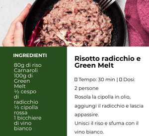 Devo ammettere che ero un po’ scettica all’inizio, ma il Green Melt mi ha completamente conquistata! La consistenza è incredibile: si scioglie perfettamente, è cremoso e ha un sapore delicato ma davvero gustoso. L’ho provato sulla pizza e nel risotto ed è stato un successo!