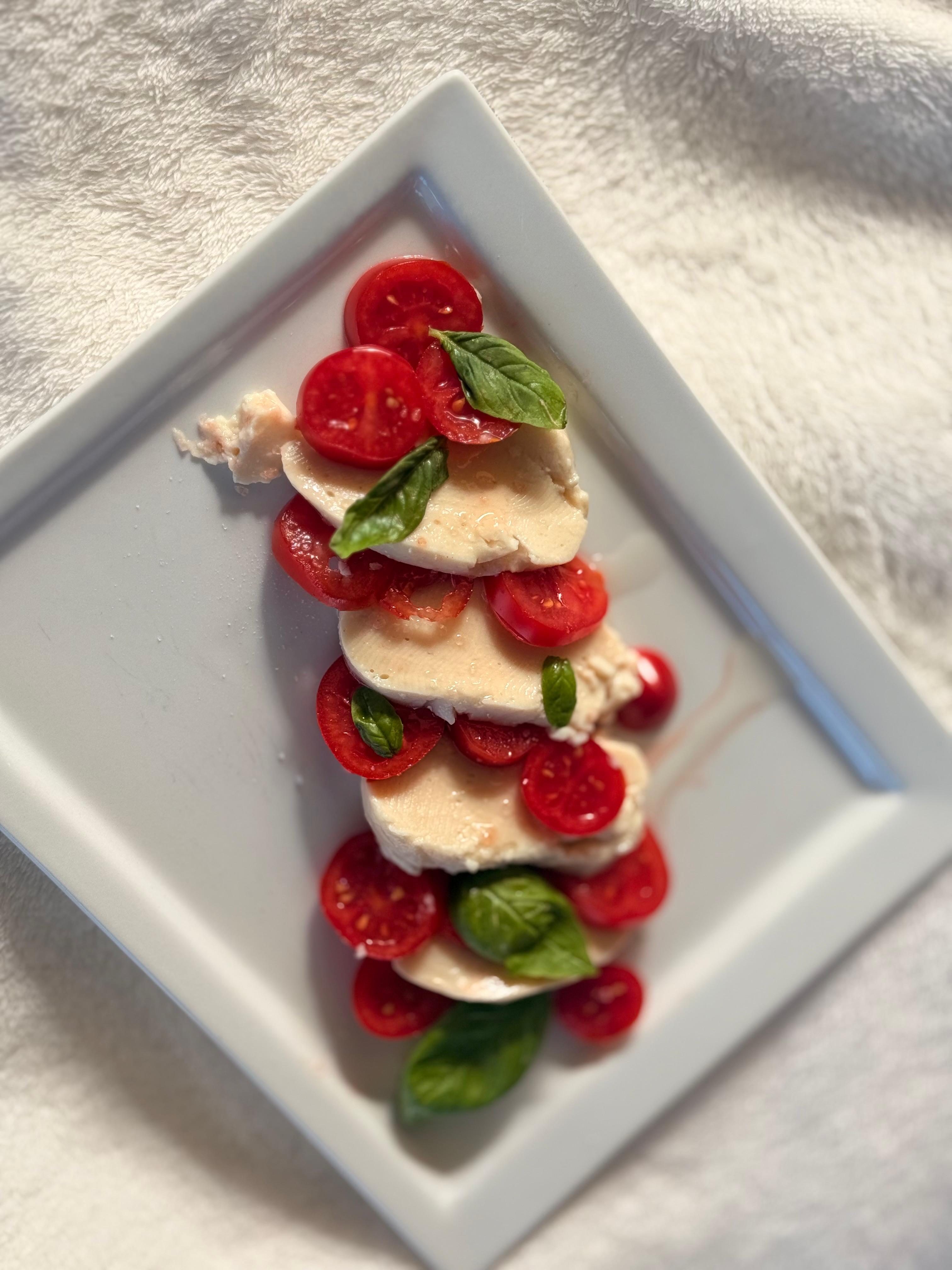 Green Pleasure è la nostra specialità vegetale fresca, ispirata alla mozzarella: morbida, delicata, pronta da affettare. Solo 2,3% di grassi e 116 kcal per 100 g, artigianale con ingredienti semplici a base di soia. Perfetta per chi vuole mangiare leggero senza rinunciare al piacere.